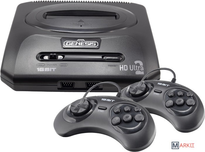 Более доступный вариант HD консоли Sega в более компактном корпусе MD2 и с проводным комплектом геймпадов.Решение ориентировано на тех потребителей, которым корпус MD2 кажется более привычным, а проводное подключение джойстиков – более надежным и моментально реагирующим на команды пользователя.Все остальные функции заслужившего популярность модели HD 16 Bit в виде прекрасной HD картинки с функцией масштабирования Pixel Scale и восхитительного сборника игр из 150 игр остались на месте.Кроме этого, консоль поддерживает подключение не только классических игровых картриджей, но также суперсборников с большим объемом памяти, а также Flash Cartridge, с помощью которого можно запускать собственные игры.В приставке кроме выхода установлен специальный чип, который не только апскейлит изображение, но и сглаживает картинку. Это позволяет увеличивать картинку, но при этом глаза не режут огромные пиксели. Кроме этого, на всех современных ТВ и ЖК-мониторах вывод изображения через AV по контуру всех движущихся объектов дают артефакты и муар. При игре в Retro Genesis HD Ultra при подключении через HDMI картинка более сочная и без указанного дефекта. Она мягкая и яркая.60 FPS – плавный игровой процесс без тормозовПереключатель сигнала NTSC/PAL - J/O для большей совместимости с играми