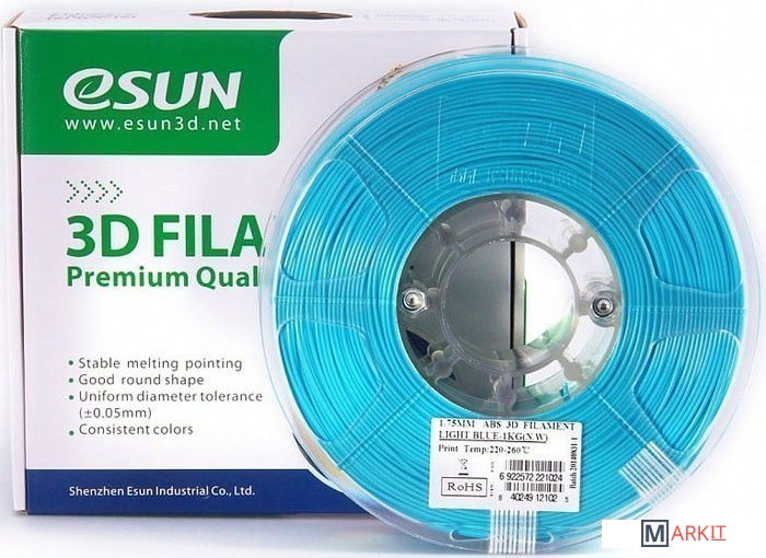 Markit » Расходные материалы для 3д принтера » Пластик eSUN ABS 1.75 мм 1000 г (голубой)