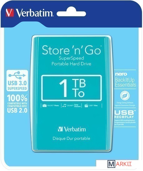 Markit » Внешние накопители (HDD и SSD) » Внешний накопитель Verbatim Store 'n' Go с USB 3.0 1TB (бирюзовый) [53174]